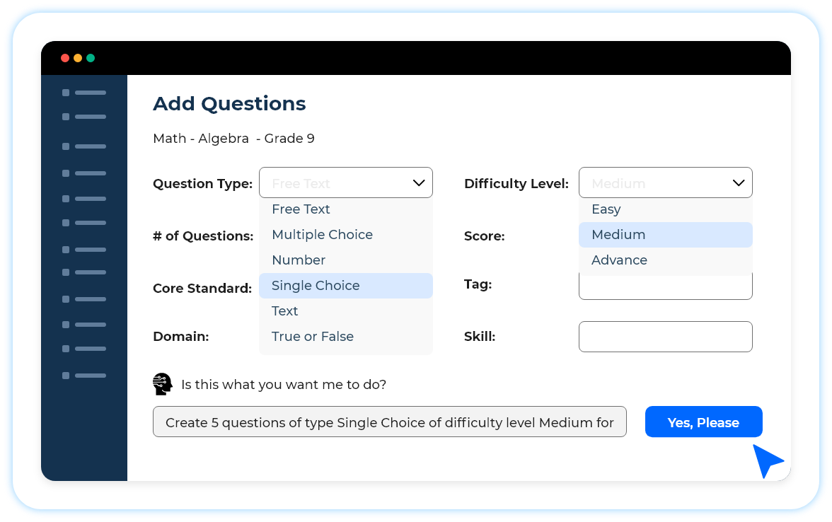 Teachers can generate assessments more quickly, review student performance more deeply, and identify learning gaps more accurately. Automated grading handles objective questions, while AI-driven insights highlight which skills need reinforcement.